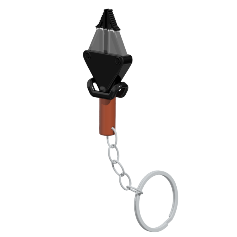 Fabricado en impresión 3D, color negro-gris-naranja, incluye argolla.