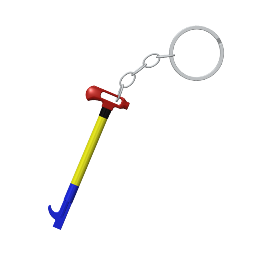 Fabricado en impresión 3D, color rojo-azul-amarillo-negro, incluye argolla.