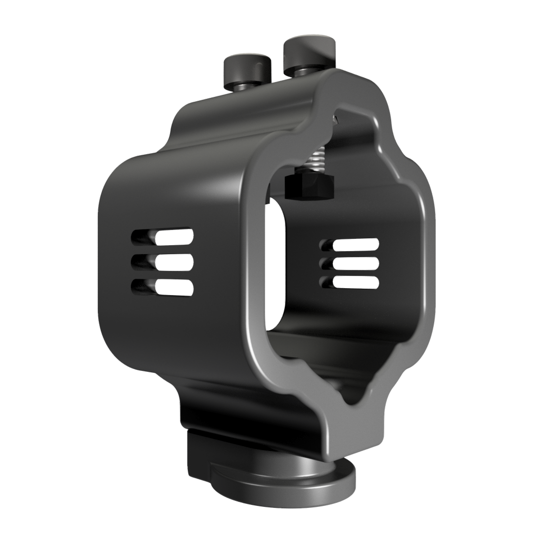 Admite linternas o cámaras circulares de hasta 30 mm de diámetro, con un anclaje seguro y fácil de maniobrar.
